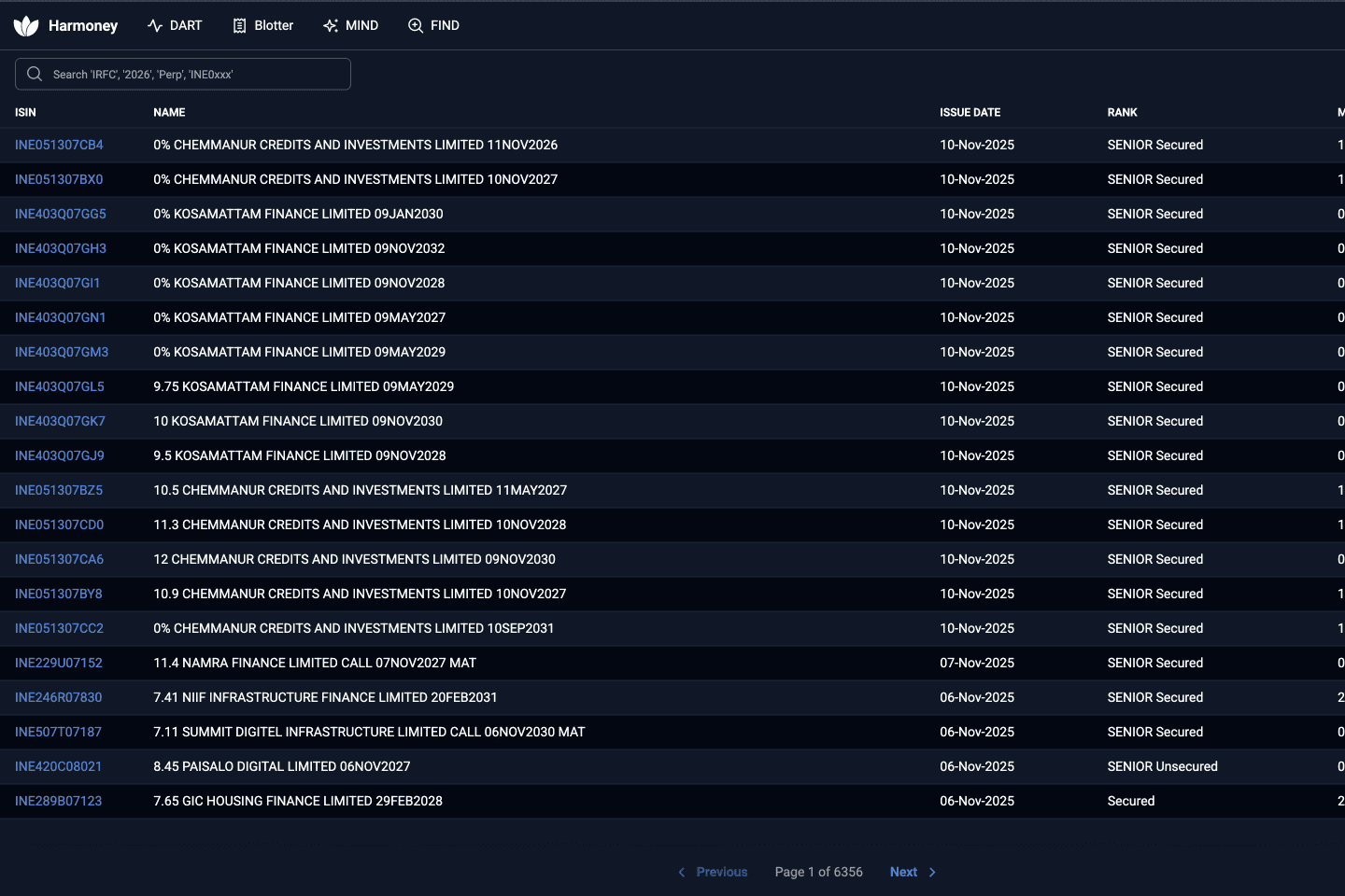 50,000+ ISINs including G-Sec, corporate bonds, CP/CD with cashflows, price calculator, and IM